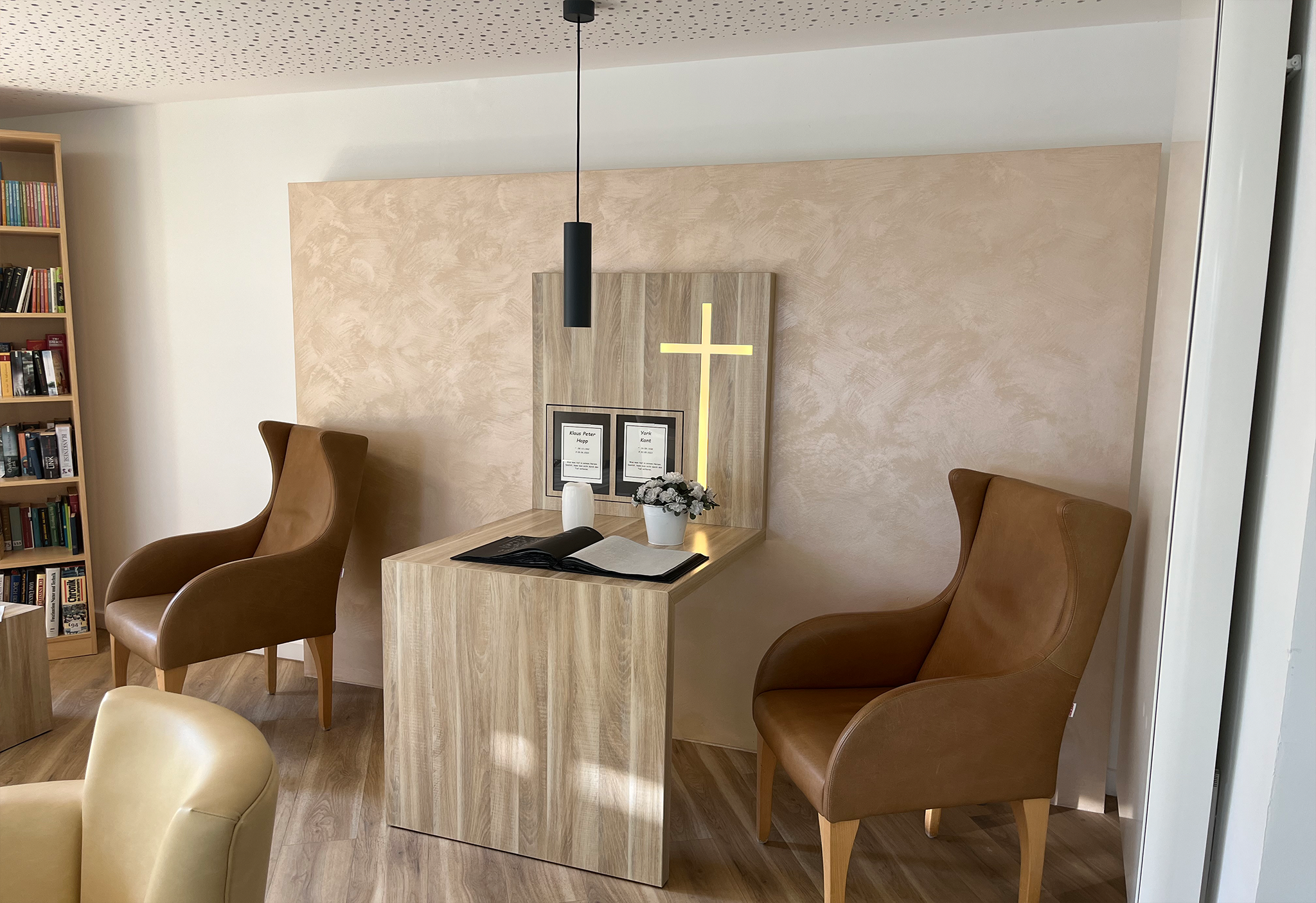 Durch die präzise Weiterentwicklung der Bestandsgebäude und die gezielte Ergänzung moderner Bauteile entstand ein zeitgemäßes Seniorenzentrum, das hohe funktionale und technische Anforderungen erfüllt und zugleich ein freundliches, wohnliches Umfeld in der besonderen Topografie des Ölbergs bietet.